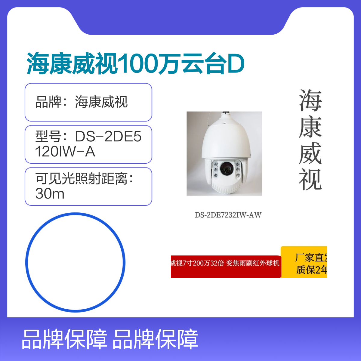 品牌:海康威视是否支持加工定制:否是否进口:否是否支持红外:是是否支持电脑监控:是分辨率:200万像素工作湿度:-30℃~65℃工作温度:-30~65功耗:40max(其中红外灯15max)红外灯照射距离:150m