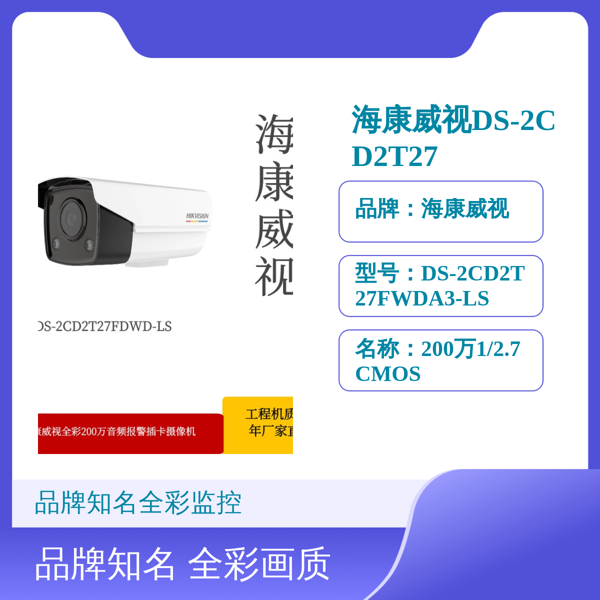 型号:DS-2CD2T27FWDA3-LS