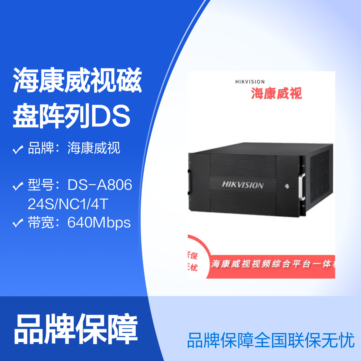 品牌:海康威视是否支持加工定制:否是否进口:否带宽:640Mbps是否支持电脑监控:是功能:磁盘阵列存储计量单位:台类型:硬盘录像机是否支持实时画面:是特色服务:全国联保质保2年通讯接口:3个千兆数据网口型号:DS-A80624S/NC1/4T硬盘容量:4T产品分类:硬盘录像机物理接口:2个HDMI接口