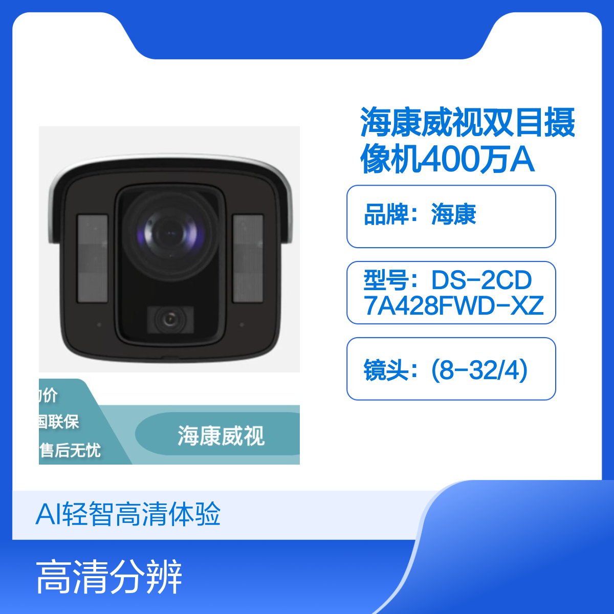 海康威视双目摄像机400万AI轻智能型号DS-2CD7A428FWD-XZ原装正品