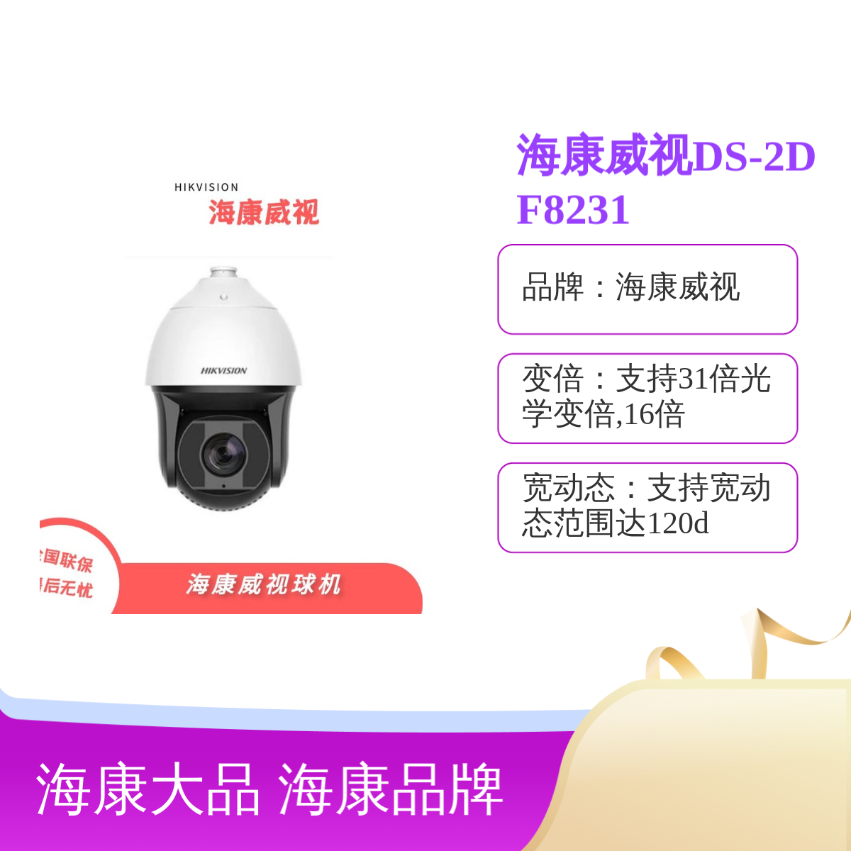 功能:支持31倍光学变倍,16倍数字变倍,宽动态范围达120dB,适合逆光环境监控,支持360°水平旋转,支持300个预置位,8条巡航扫描,内置7路报警输入和2路报警输出,支持报警联动功能