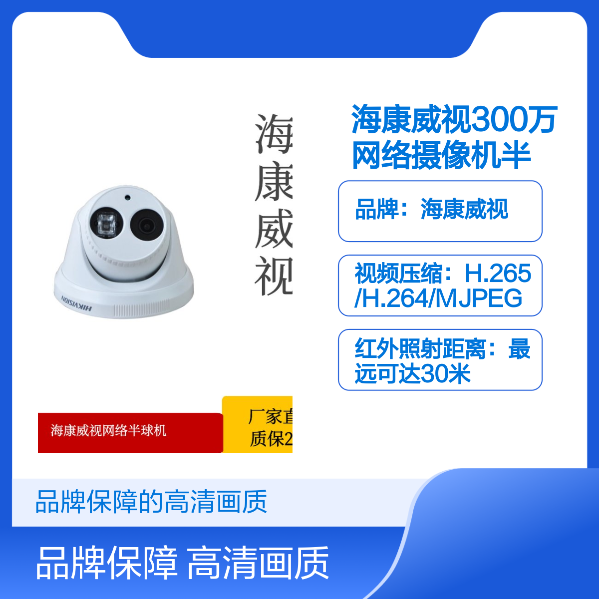品牌:海康威视是否支持加工定制:否是否进口:否是否支持红外:是安装方式:半球式安装环境:室内背光补偿:支持是否支持电脑监控:是分辨率:300万功能:网络摄像红外灯照射距离:最远可达30米画质:高清计量单位:台类型:网络摄像机视频分辨率:300万视频压缩方式:H.265/H.264/MJPEG适用范围:室内监控