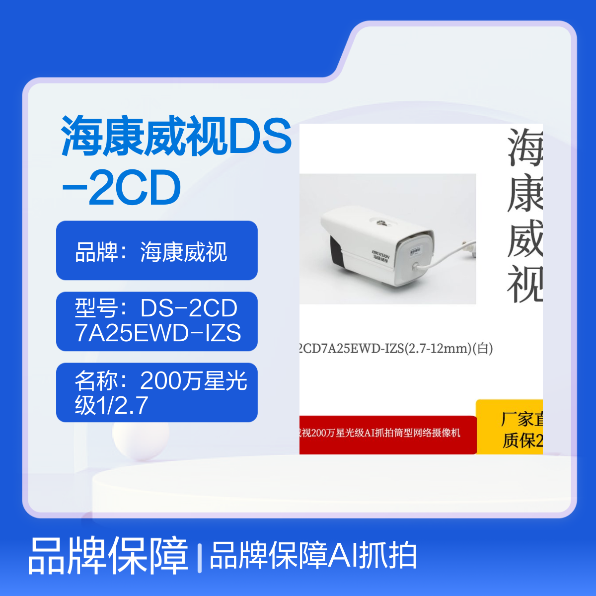 品牌:海康威视是否支持加工定制:否是否进口:否是否支持红外:是尺寸:206.5×103.9×100mm是否支持电脑监控:是分辨率:200万功能:AI人脸抓拍计量单位:台款式:筒型类型:网络摄像机是否支持实时画面:是特色服务:质保2年型号:DS-2CD7A25EWD-IZS重量:1450g产品分类:网络摄像机