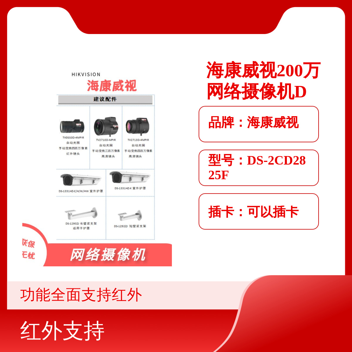 品牌:海康威视是否支持加工定制:否是否进口:否是否支持红外:是是否支持电脑监控:是功能:监控画质:高清计量单位:台款式:枪形类型:枪形是否支持实时画面:是特色服务:全国联保二年像素:200型号:DS-2CD2825F产品分类:网络摄像机