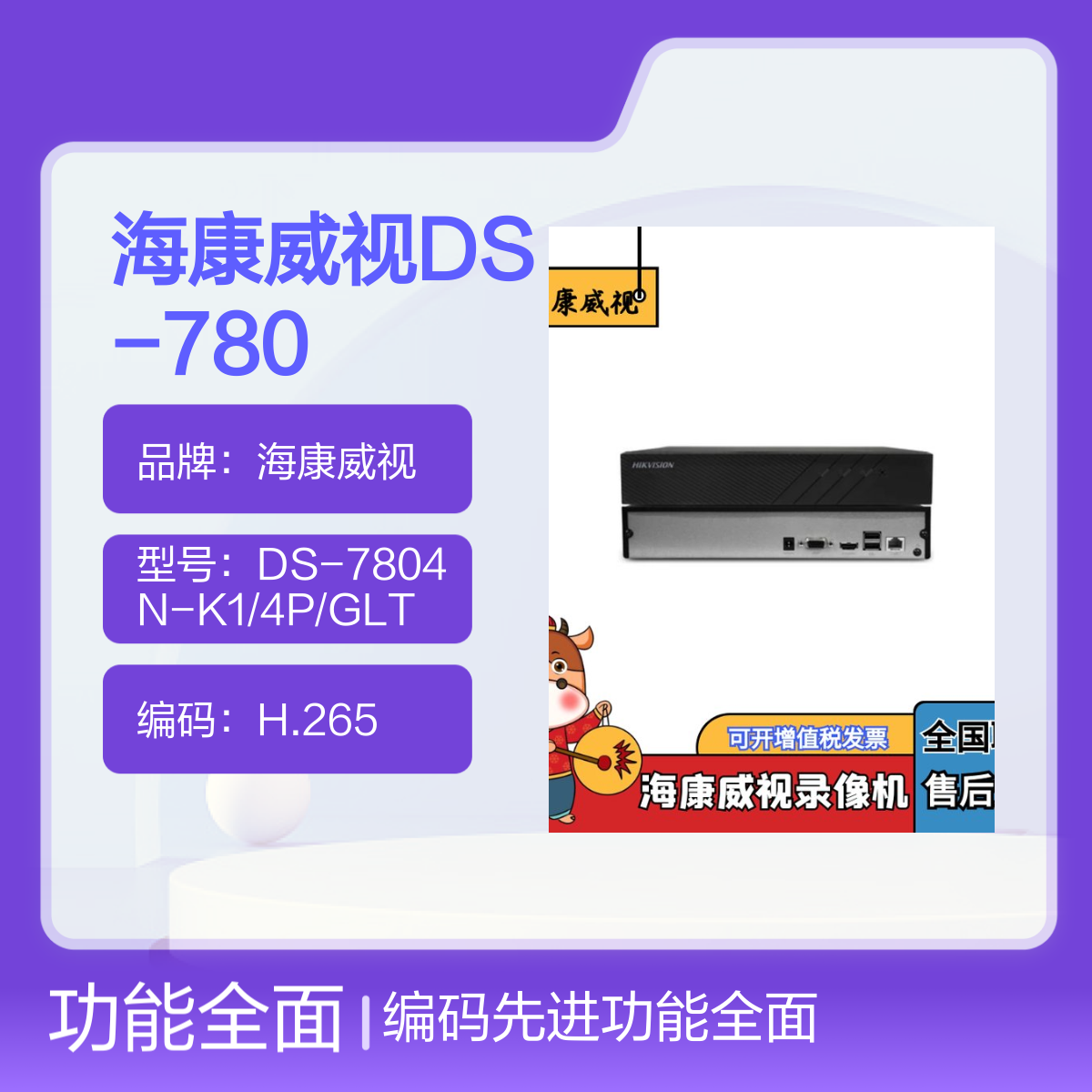 型号:DS-7804N-K1/4P/GLT
