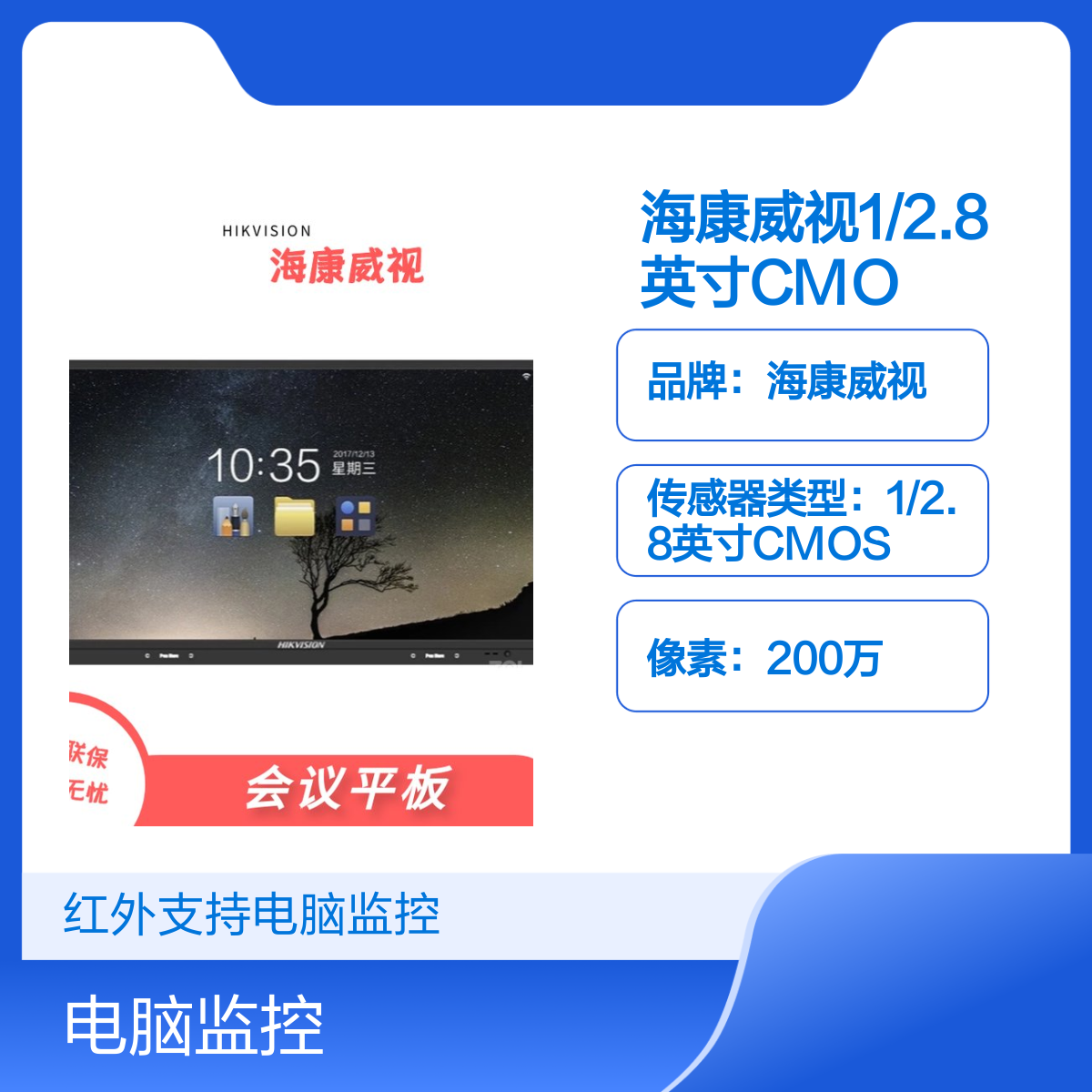 品牌:海康威视是否进口:否是否支持红外:是是否支持电脑监控:是分辨率:1920*1080红外灯照射距离:150米类型:会议平板OPS电脑是否支持实时画面:是特色服务:全国联保售后无忧图像传感器:1/2.8英寸CMOS像素:200信噪比:大于等于55db型号:DS-D5AC9C7-16S2变焦倍数:16倍