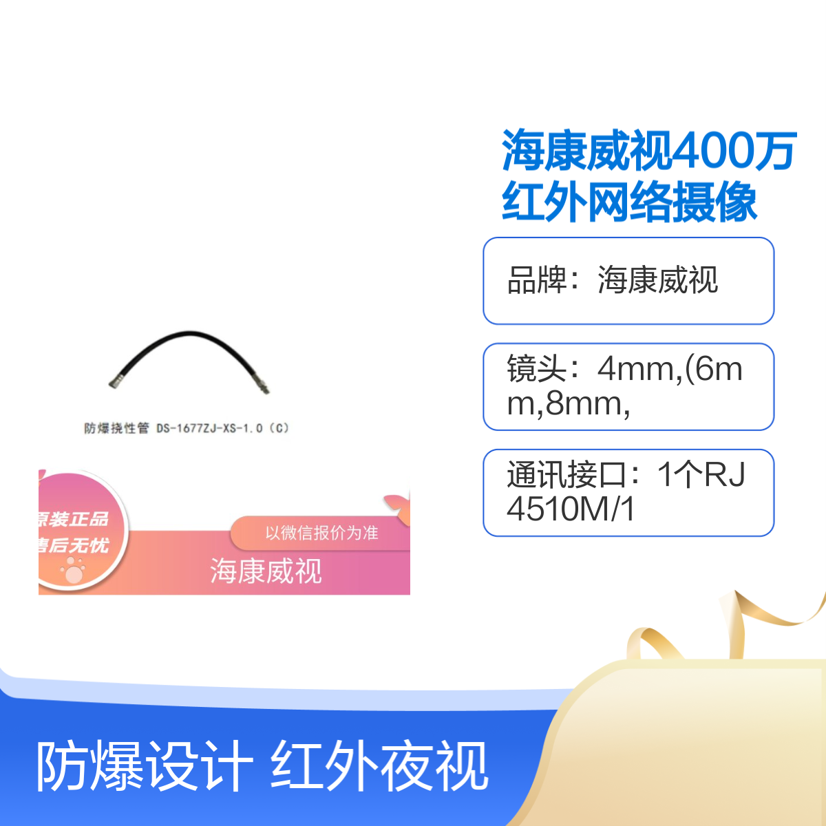 海康威视400万红外网络摄像机DS-2XE6046FWD-I防爆全国联保2年