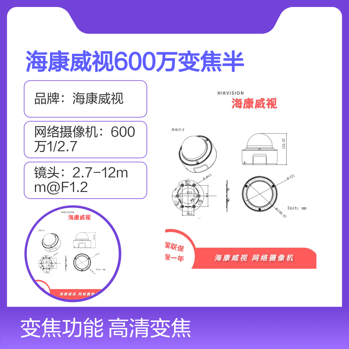 海康威视600万变焦半球DS-2CD7167FWDV2-IZS网络摄像机