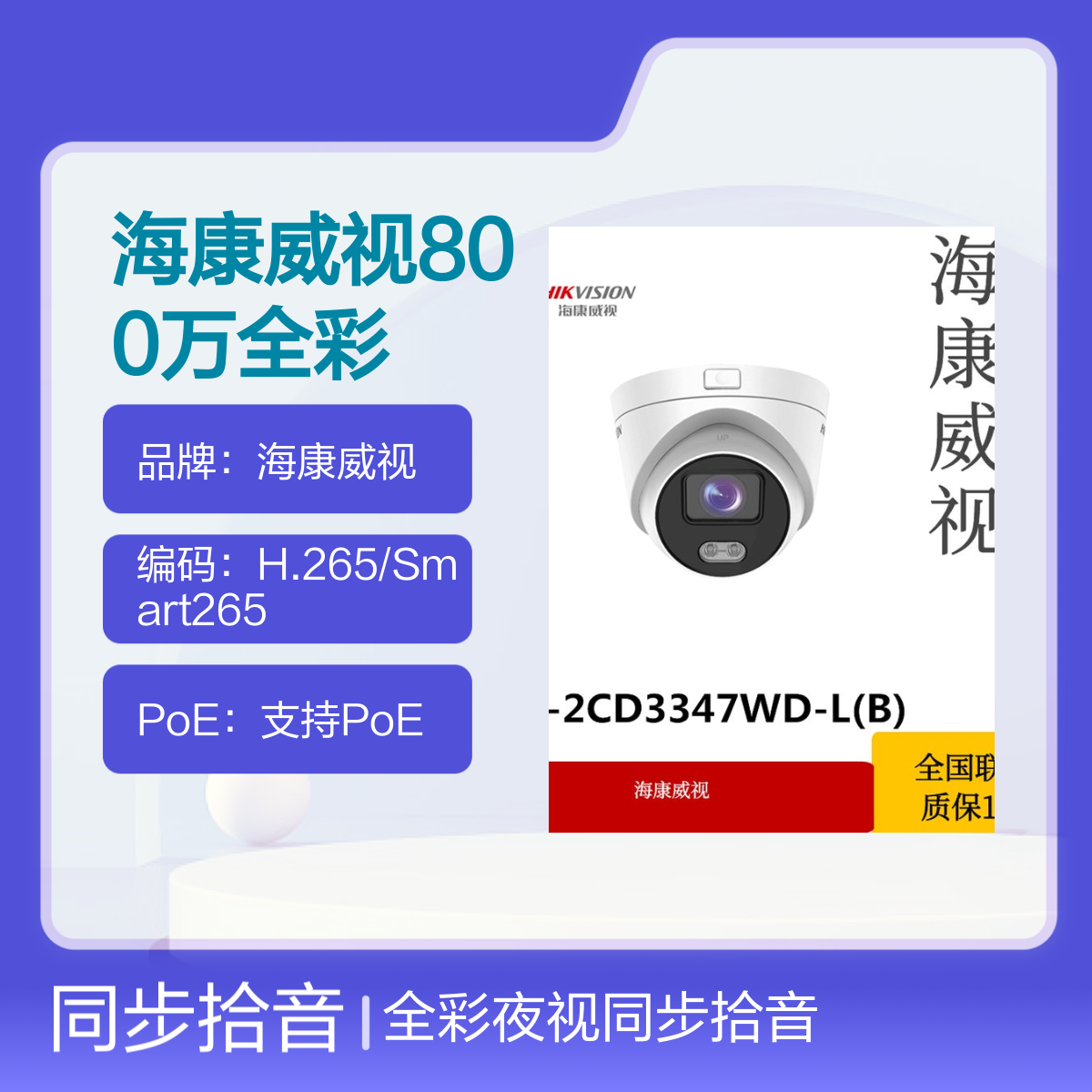功能:全彩夜视、同步拾音