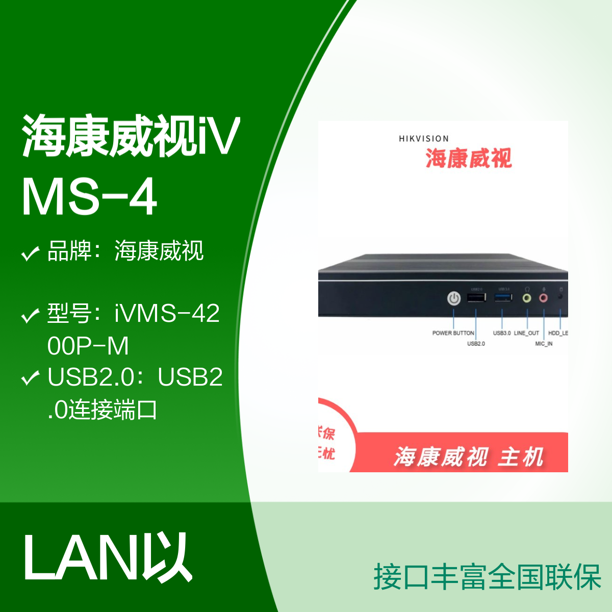 品牌:海康威视型号:iVMS-4200P-MUSB2.0:USB2.0连接端口LINE_OUT:连接外接音频装置的插孔生产厂家:浙江杭州海康威视可售范围:全国可厂家直发MIC_IN:连接外部麦克风的插头LAN:LAN以太网口质保:2年正品:原装正品