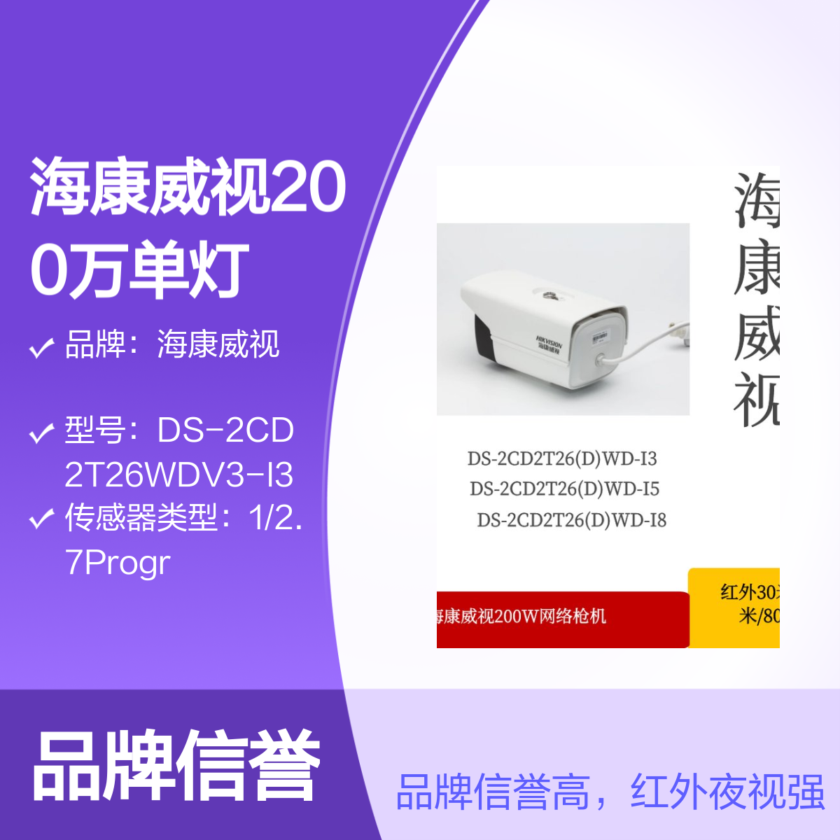 品牌:海康威视是否支持加工定制:否是否进口:否是否支持红外:是尺寸:194.1×93.85×93.52mm是否支持电脑监控:是电子快门:1/3秒至1/100,000秒分辨率:200万工作湿度:小于95%(无凝结)工作温度:-30~60红外灯照射距离:30米计量单位:台类型:网络摄像机是否支持实时画面:是像素:200型号:DS-2CD2T26WDV3-I3重量:750g产品分类:网络摄像机