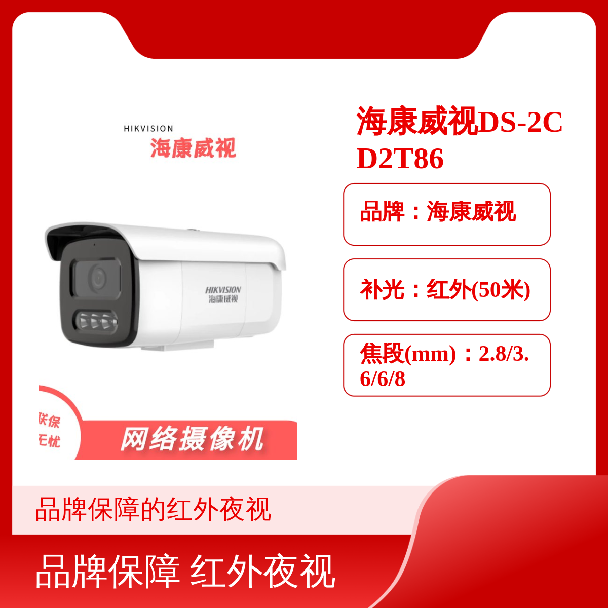 海康威视DS-2CD2T86EWD-PW网络摄像机 红外50米 200万像素