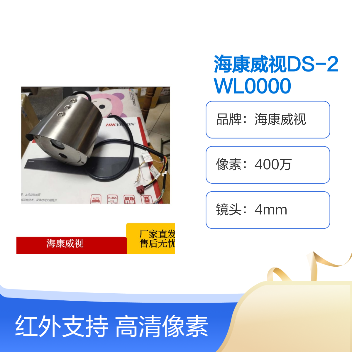 品牌:海康威视是否支持加工定制:否是否进口:否是否支持红外:是尺寸:202x174x172mm是否支持电脑监控:是分辨率:2560x1440工作湿度:-30℃~60℃,湿度小于95%(无凝结)工作温度:-30~60红外灯照射距离:最远可达30米