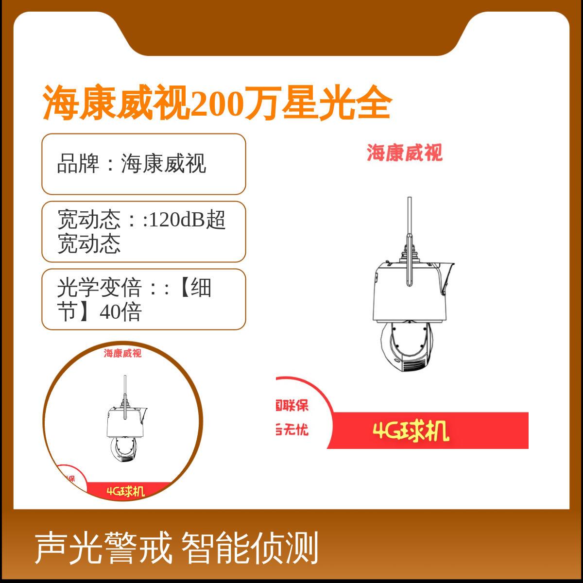 品牌:海康威视是否支持加工定制:否是否进口:否是否支持红外:是垂直旋转角度:【全景】-5-30是否支持电脑监控:是分辨率:最大1920×1080@30fps高清画面输出,全景支持最大2560×1440@30fps高清画面输出功能:支持深度学习算法,提供精准的人车分类侦测、报警、联动跟踪等红外灯照射距离:细节照射距离最远可达150m,全景照射距离最远可达30m
