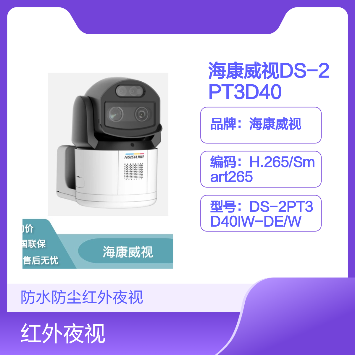 海康威视DS-2PT3D40IW-DE/W摄像头,400万高清,IP66防水