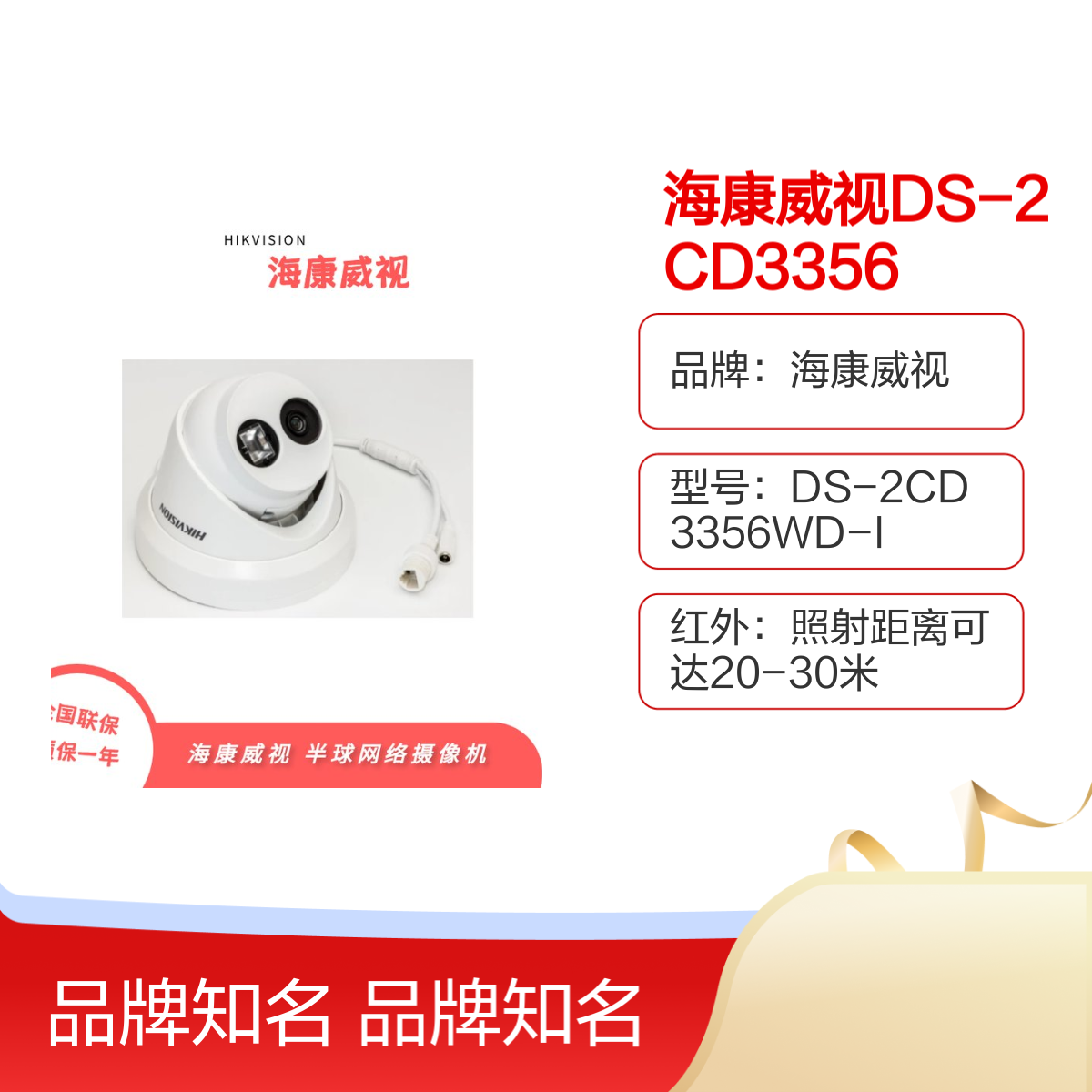 品牌:海康威视型号:DS-2CD3356WD-I是否支持红外:支持红外灯照射距离:20-30米smartIR:支持smartIR,防止夜间红外过曝质保:全国联保质保1年厂家:浙江杭州海康威视可售范围:全国是否支持加工定制:否是否进口:否像素:500分辨率:1080P功能:网络摄像机类型:半球机视频输出:有线连接电源:需另行购买是否支持电脑监控:是产品分类:安全防护;安防监控设备;监视器用途范围:监控