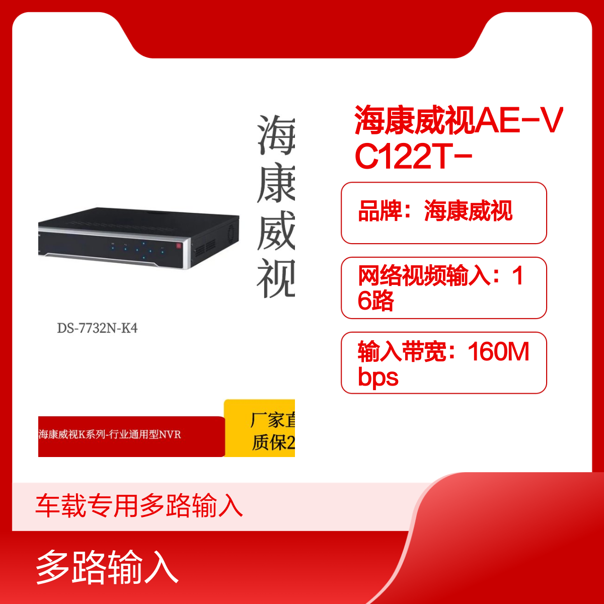 品牌:海康威视是否支持加工定制:否是否进口:否是否支持红外:是带宽:160Mbps是否支持电脑监控:是功能:车载视频监控计量单位:台类型:车载摄像机视频输入:16路视频输入路数:16适用范围:车载型号:AE-VC122T-S硬盘容量:1T