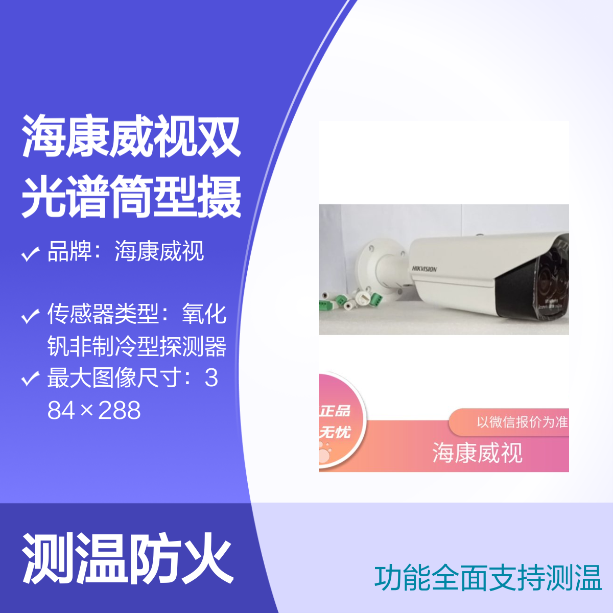 品牌:海康威视是否支持加工定制:否是否进口:否是否支持红外:是安装环境:文博,高端楼宇,企业园区,政府园区,学校,能源是否支持电脑监控:是分辨率:384×288工作湿度:<95工作温度:-40C-70功能:支持测温、防火等计量单位:台款式:筒型类型:双光谱筒型摄像机