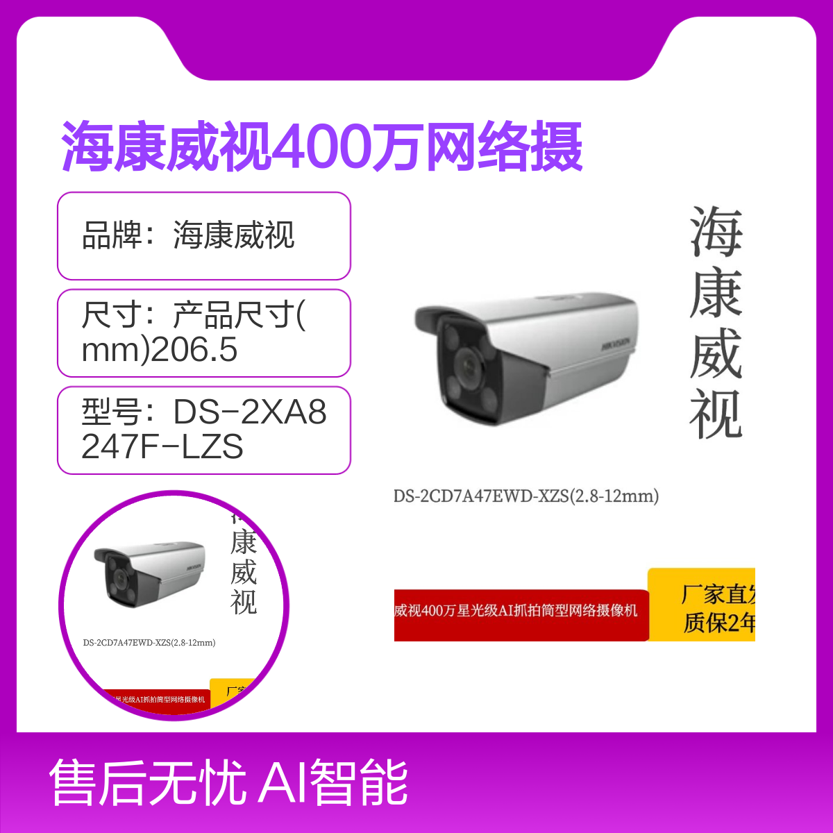 海康威视400万网络摄像机DS-2XA8247F-LZS支持AI模型|网络摄像机,DS-2XA8247F-LZS,海康威视