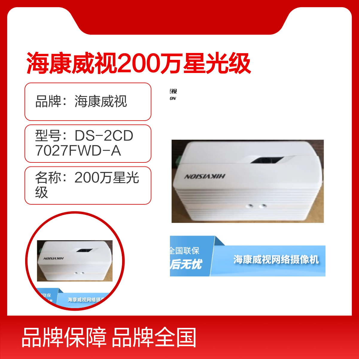 海康威视200万星光级网络摄像机DS-2CD7027FWD-A 全国联保