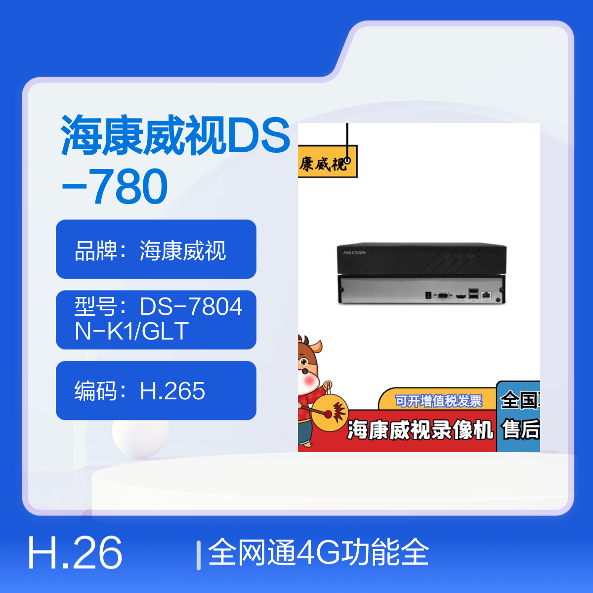 型号:DS-7804N-K1/GLT