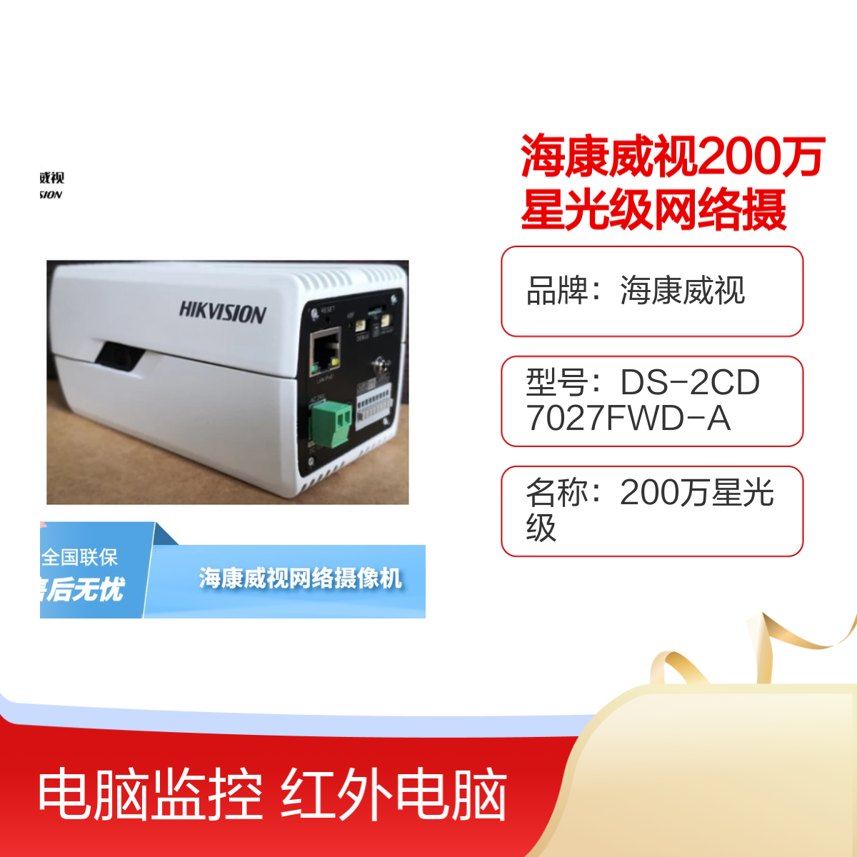 海康威视200万星光级网络摄像机DS-2CD7027FWD-A 全国联保